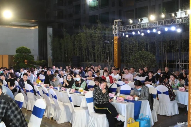 经销商晚宴当日晚6时许,以【乘“圣”跨越】为主题的,nangong28.com集团集团第45届国际家具展接待晚宴暨2020年度优秀经销商颁奖盛典,在营销中心四楼景观花园隆重举行,来自全国各地的经销商朋友欢聚一堂,共同分享一场精彩纷呈的晚宴。