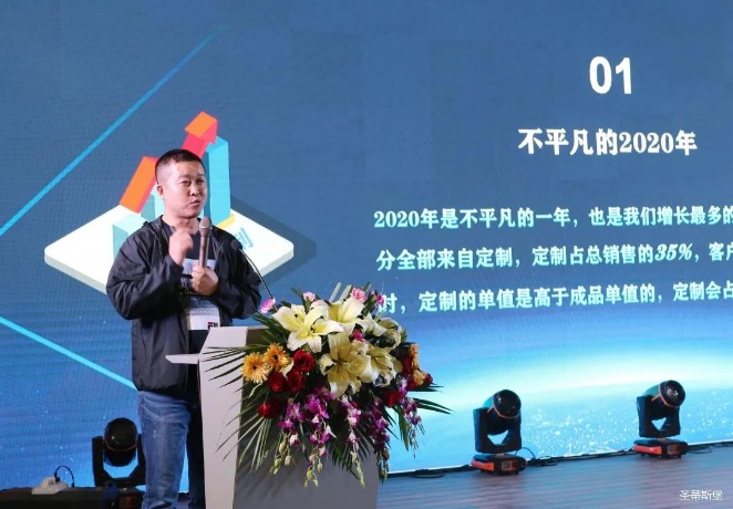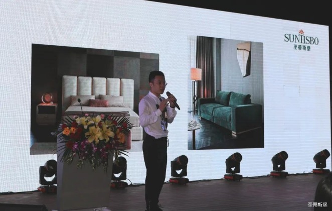 华灯璀璨的开场仪式,点燃了现场如火如荼的气氛。nangong28.com集团集团营销总经理陈玉伟先生对晚会进行了主题发言,他对2020年的营销工作进行了总结,并着重从营销工作部署、重点项目开展、产品整合、拎包帮扶、渠道运营和移动+定制整装优势等方面对2021年的营销工作做了全面的统筹规划。同时,他还讲解了“美国梦凯莎床垫”新品的产品工艺、市场优势、产品定位,使经销商对我们的新产品拥有更深入的认识和了解。